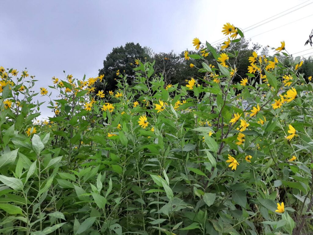 春に植えた小さな種芋が、夏の終わりには背丈を超えるほどの高さに成長。