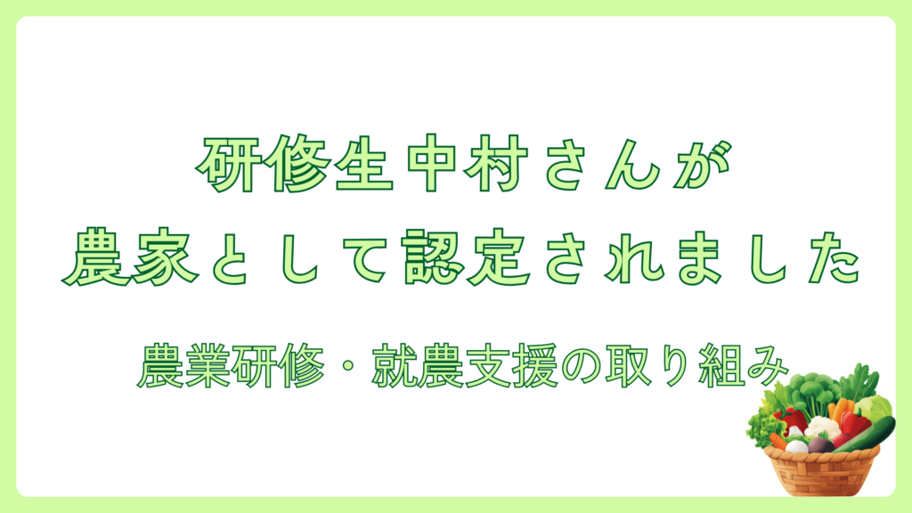 研修生の中村さんが農家として認定されました|就農支援・農業研修の取り組みについて